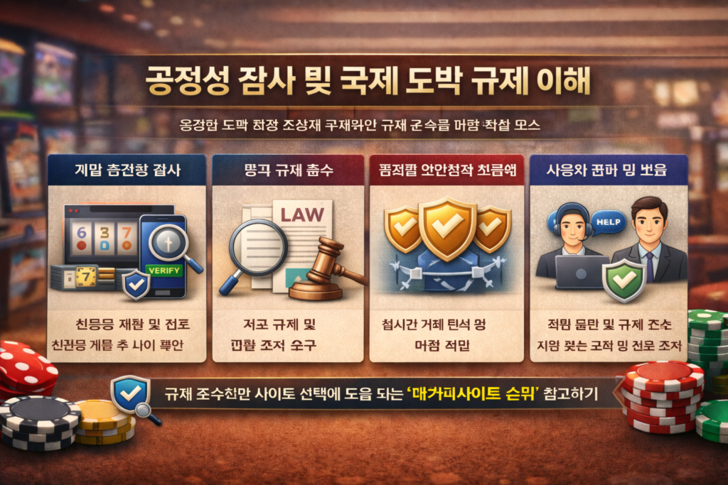 결론적으로 공정성 감사와 국제 도박 규제는 안전하고 신뢰할 수 있는 도박 환경을 구축하는 핵심 요소입니다. 기술적 검증과 법적 기준이 결합되어 플랫폼의 투명성을 보장하며, 사용자 보호와 산업의 지속 가능한 발전을 동시에 이끌어갑니다.